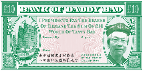 - Valid at Mr Bao, Peckham, Daddy Bao, Tooting and Master Bao, Westfield London.